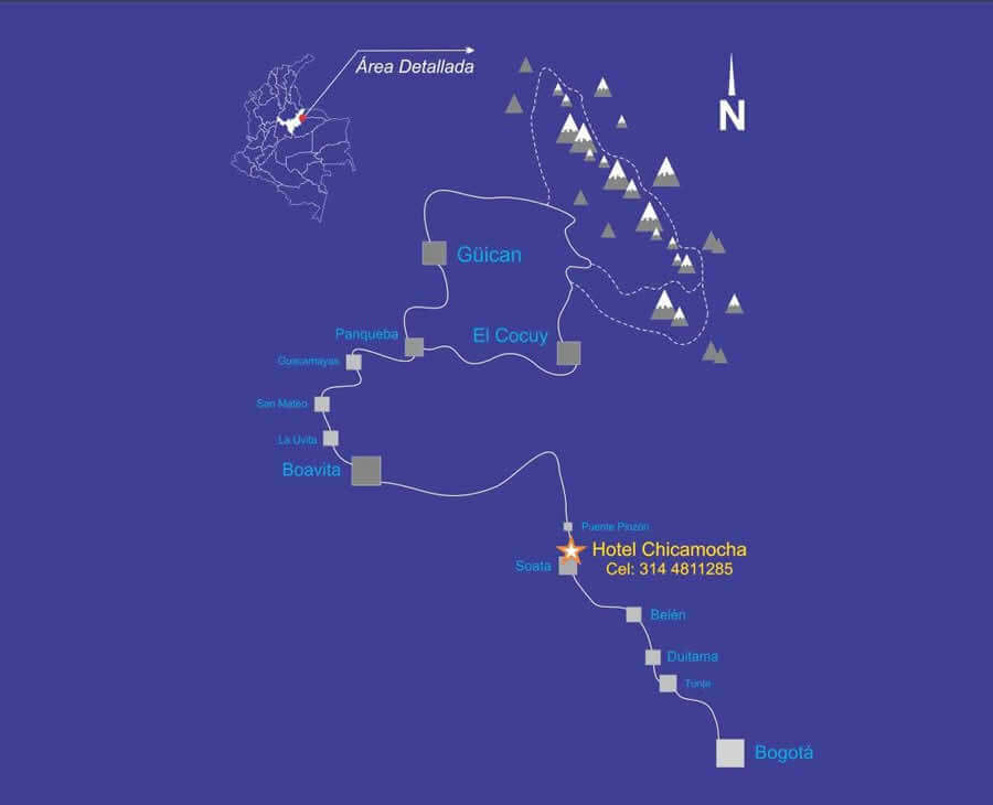 Programe su visita a este hermoso lugar y descanse en nuestro hotel en Soatá, donde encontrará la mejor atención, para luego seguir su viaje con destino a este importante e interesante sitio turístico.